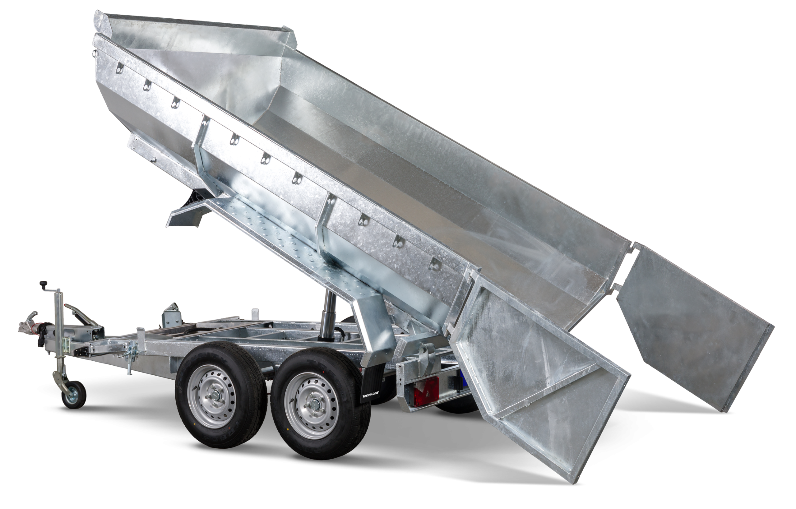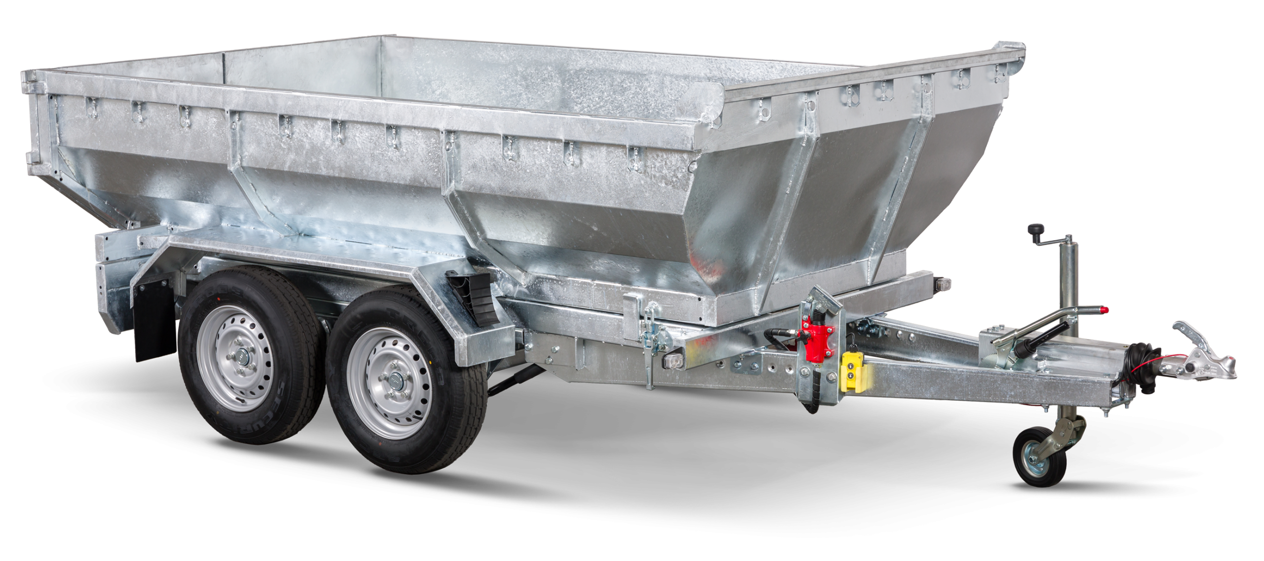 Przyczepy kiprowane SERIA KPW – Kiper wanna to idealne rozwiązanie dla rozładunku towarów sypkich. Wywrot do tyłu na siłowniku hydraulicznym wspomagany pompami elektryczną bądź ręczną ( w zależności od wybranego wariantu ) umożliwią szybkie i precyzyjne wyładowanie towaru. Rama przyczepy stalowa ocynkowana ze stali konstrukcyjnej o podwyższonej wytrzymałości.